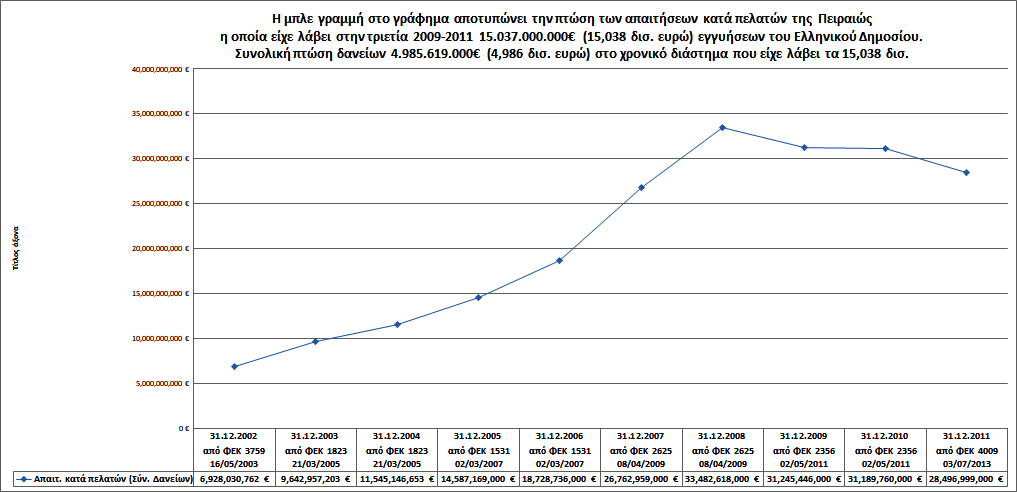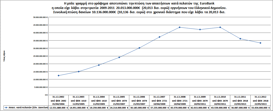 Στο ίδιο διάστημα (Μάιος 2010 – Φεβρουάριος 2012) η Χώρα εγγυήθηκε για τις Ιδιωτικές τράπεζες 170.000.000.000,00€ εις βάρος των Ελλήνων Πολιτών.