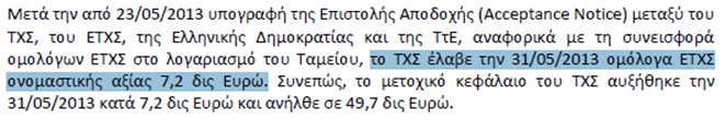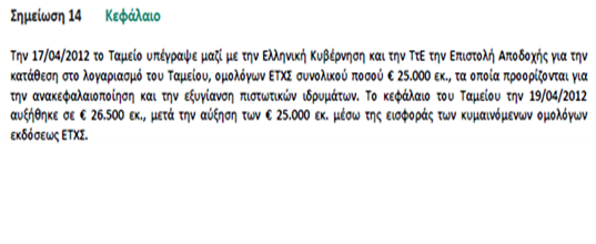 Το γεγονός αυτό σε συνδυασμό με την Έκθεση για την Ανακεφαλαιοποίηση και Αναδιάταξη του Ελληνικού Τραπεζικού Τομέα μέσω του ΤΧΣ, που δημοσιοποίησε η Τράπεζα της Ελλάδος λίγες μέρες αργότερα την Πέμπτη 27.12.2012