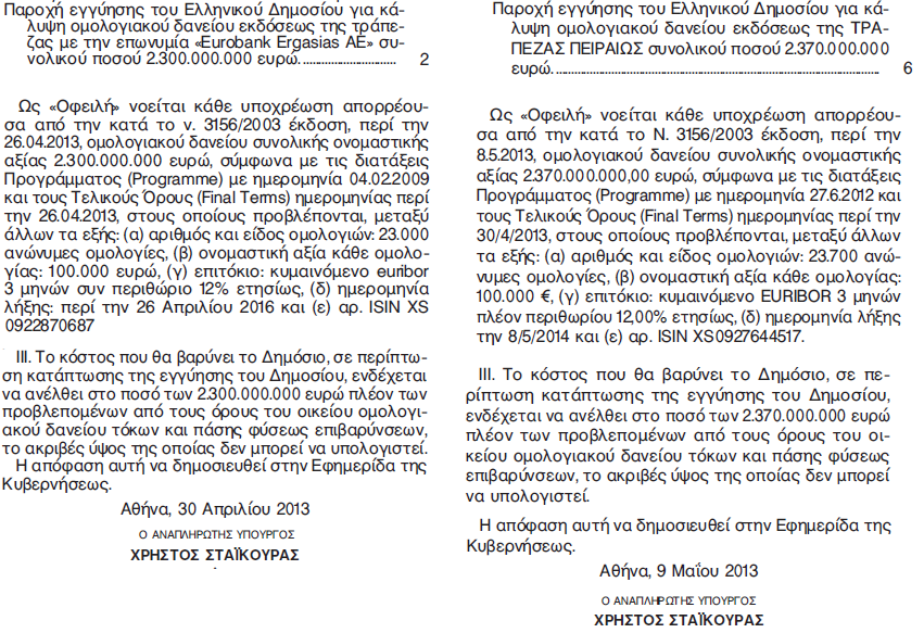 Ότι ισχύει για αυτά ισχύουν και για όλα τα υπόλοιπα που ανέρχονται στα 183 δισ αφού τα υπόλοιπα 50 δισ του ΤΧΣ έχουν ήδη μπει στο Δημόσιο Χρέος.