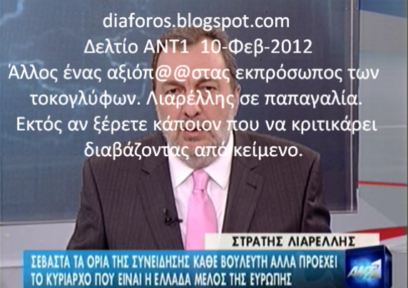 Αξιόπ@@στας ο Λιαρέλλης με τον ΑΝΤ1 να συστρατεύεται στα συμφέροντα των τοκογλύφων και στην Προδοσία της Πατρίδας.