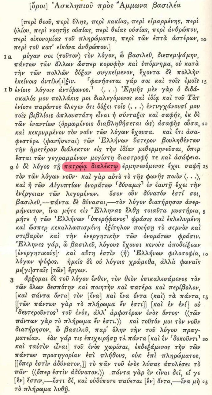 … διότι από όσες πηγές και αν έψαξα βρήκα … μόνον ερμητικά του μπεεε-τρισμέγιστου … όπου συνομιλούν ο egyptσιος-ασκληπιός με τον egyptσιο-άμμωνα στην πατρώα Ιερογλυφική.
