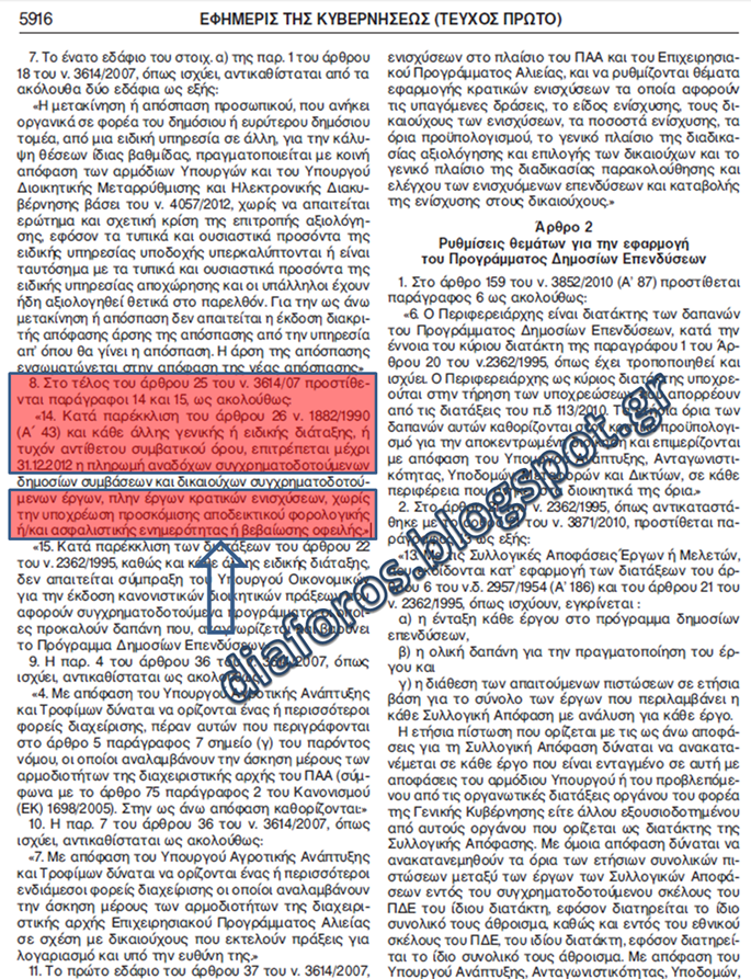 ΦΕΚ 3411 τεύχος Δεύτερο 20-12-2012 επιδότηση 1 εταιρείας