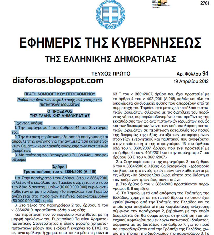 Και οι δικαιολογίες είναι εντελώς σαθρές αφού μόλις την 19-Απριλίου-2012 έδωσαν άλλα 40 ΔΙΣ και μάλιστα με Πράξη Νομοθετικού περιεχομένου.