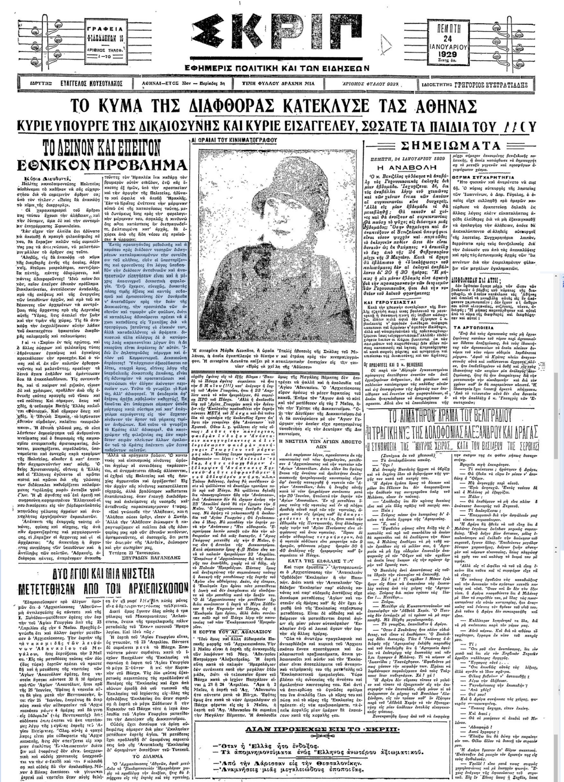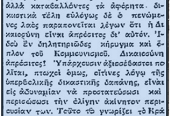 Η Δικαιοσύνη είναι απρόσιτος δια τον πενώμενο λαό – Εφημερίδα ΣΚΡΙΠ 24 01 1929.
