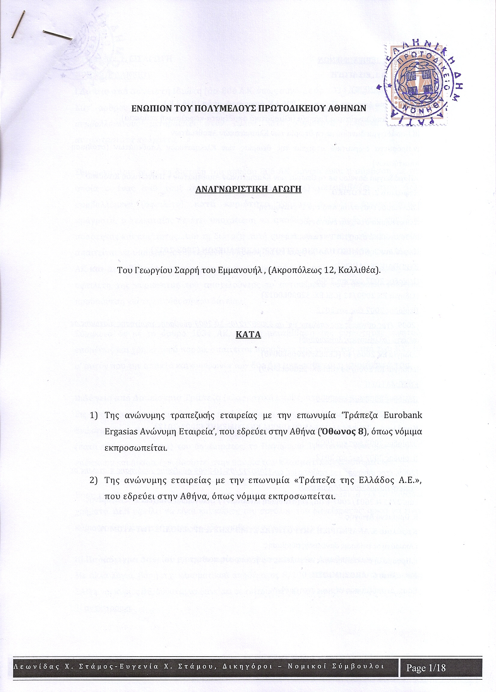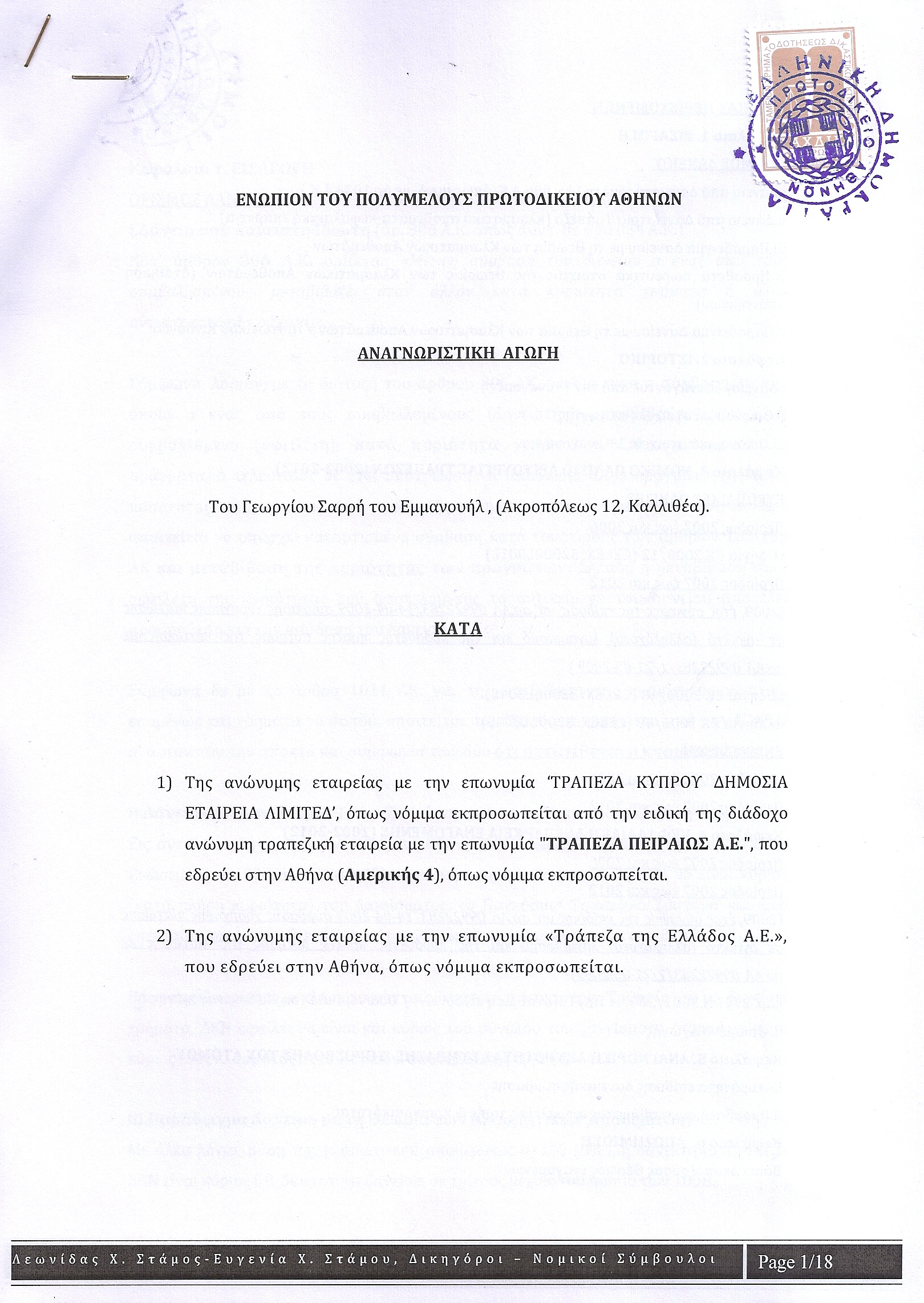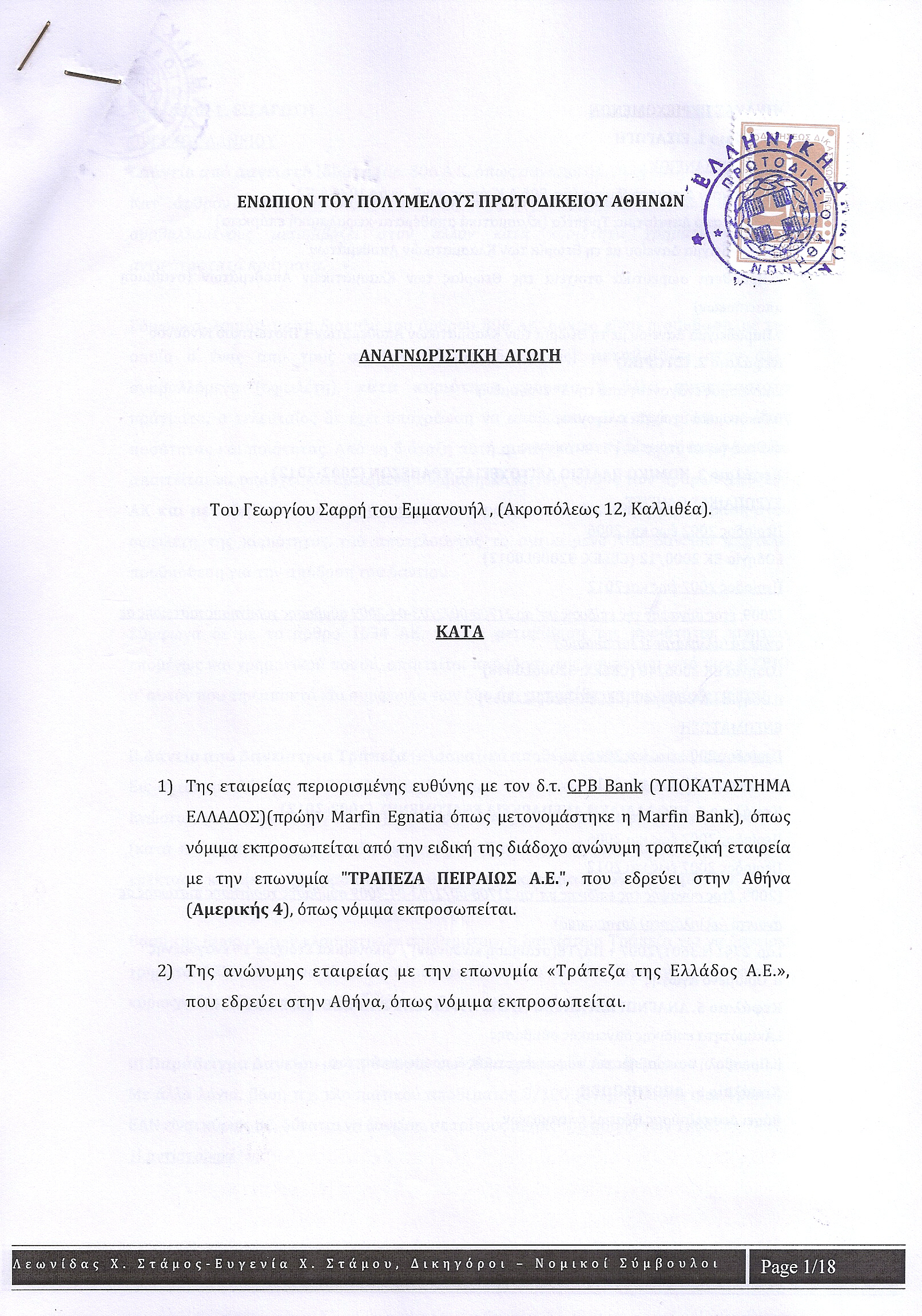 Εναγόμενες – Ταχυδρομικό Ταμιευτήριο – Eurobank (x3) – Πειραιώς (Cyprus κ Marfin) – Εθνική και συνεναγόμενη πάντα η ΤτΕ.