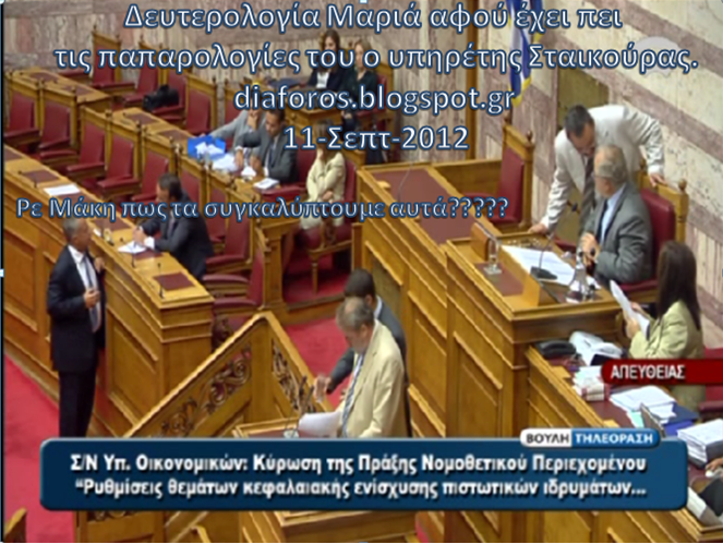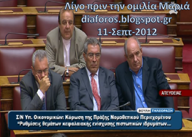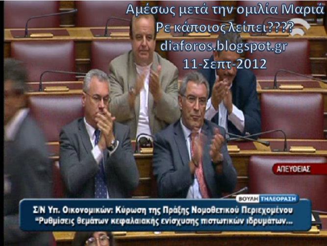 Σήμερα 11-Σεπ-2012 και αύριο 12-Σεπ-2012 κυρώνεται η ΠΝΠ της 19-Απρ-2012 με την οποία δόθηκαν τα τελευταία ; 40 ΔΙΣ υπέρ των τραπεζών.