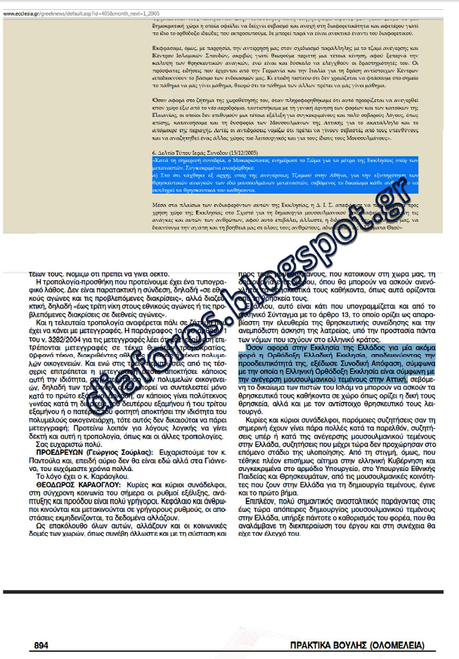 αποφάσισε να υπογράψει συνοδική απόφαση … υπέρ της κατασκευής Τεμένους … πριν πάει ο νόμος για κάτι τέτοιο στην Βουλή …