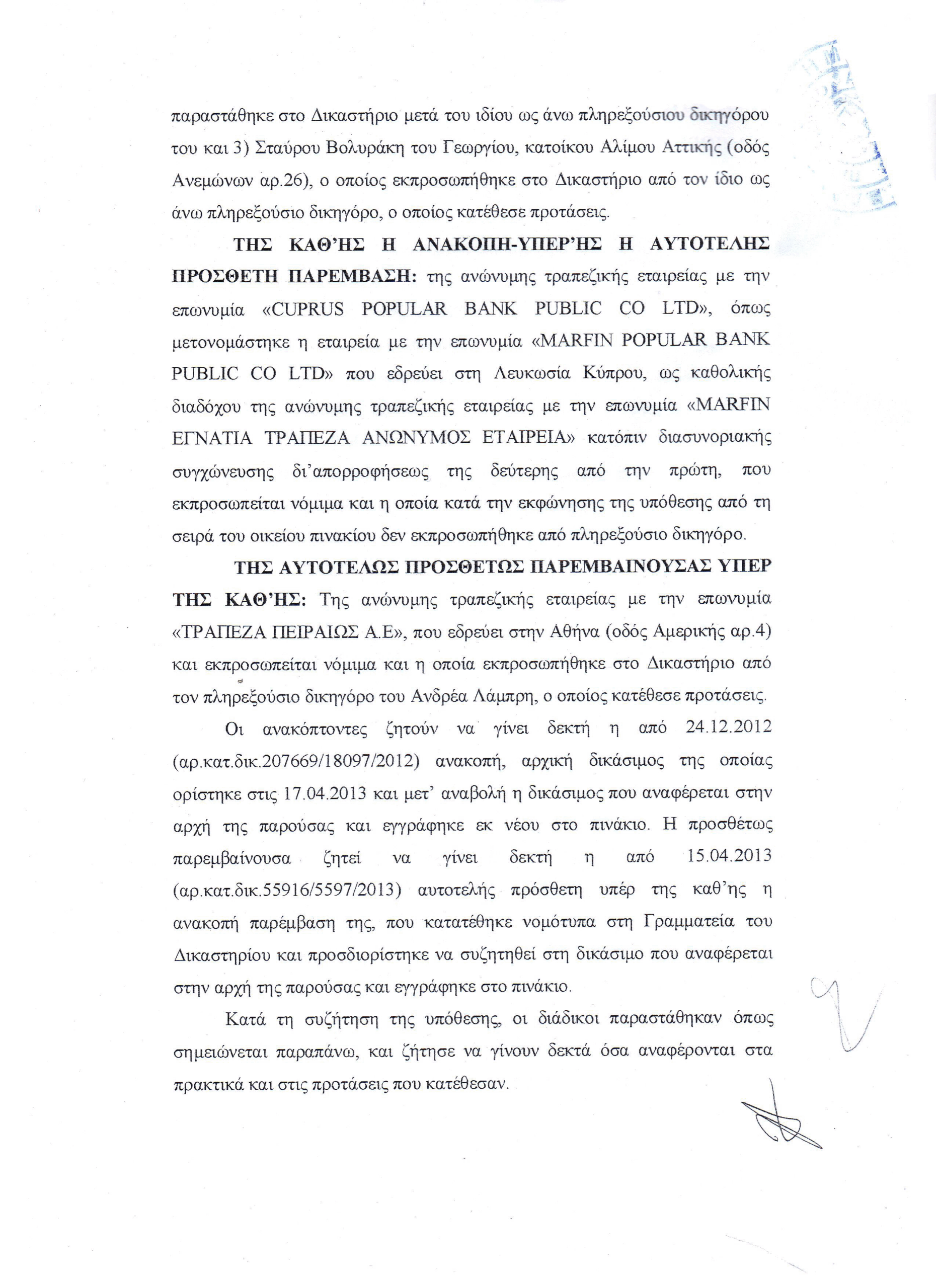 Για όποιον λοιπόν κάνει τον κόπο να διαβάσει την απόφαση … παραθέτω και ένα χρήσιμο πιστεύω απόσπασμα, προκειμένου να μην τρέχει σαν ανόητος στις αίθουσες των κινηματογράφων, όπου παίζεται η θεατρική παράσταση αντίσταση στους πλειστηριασμούς.