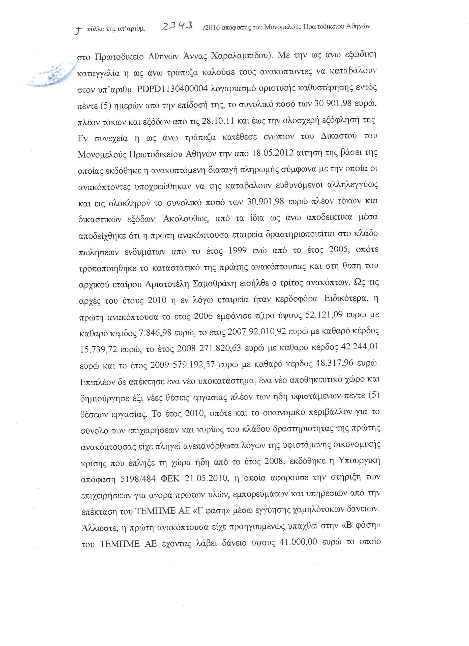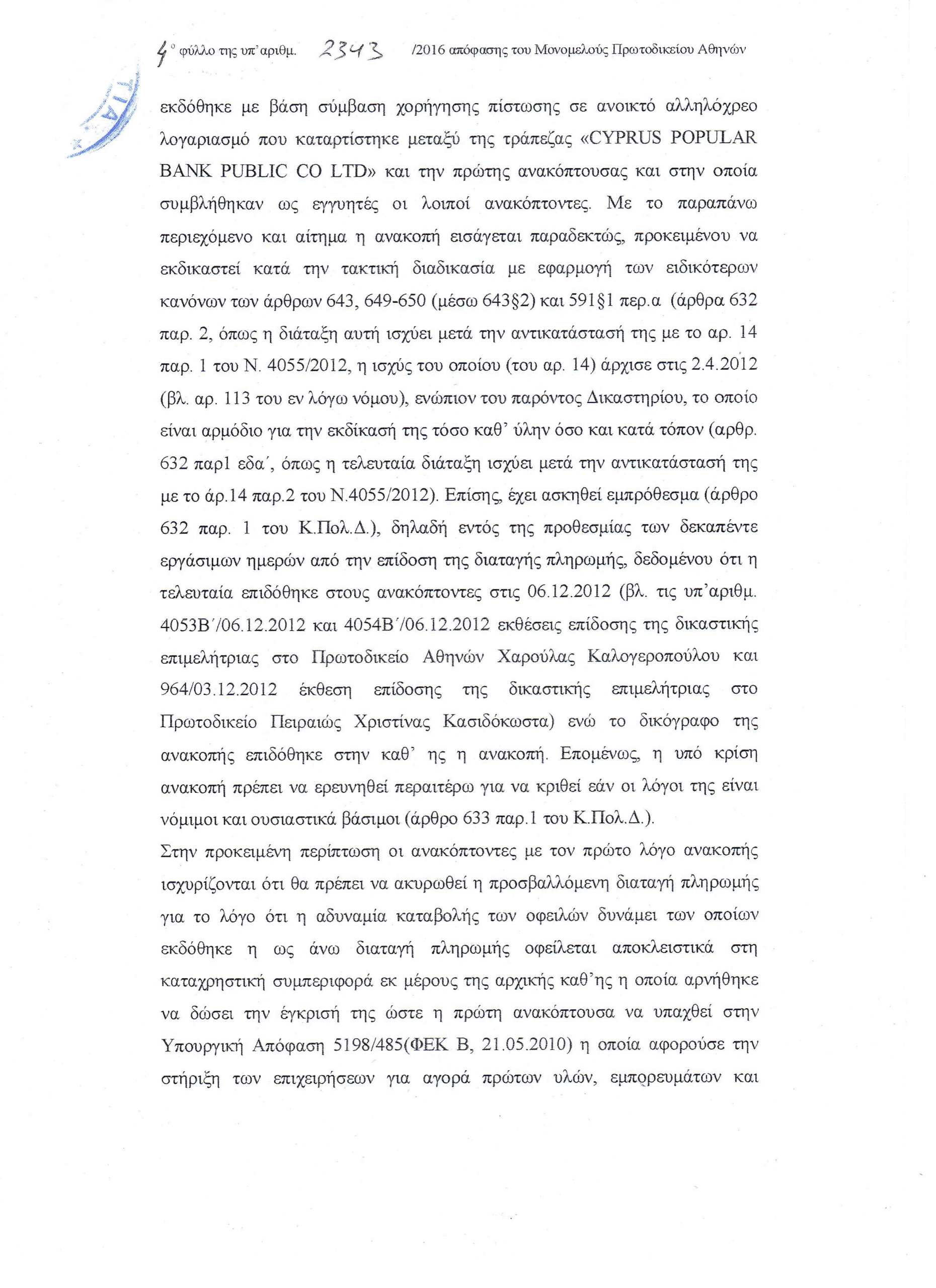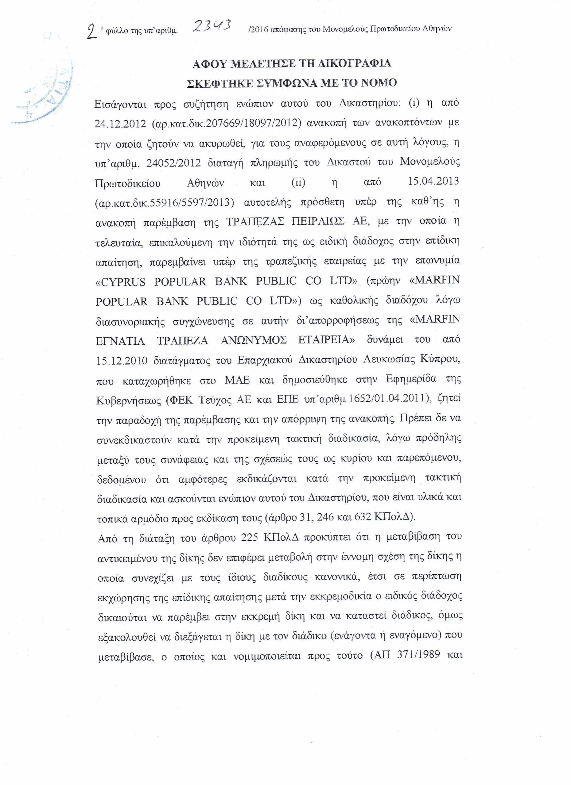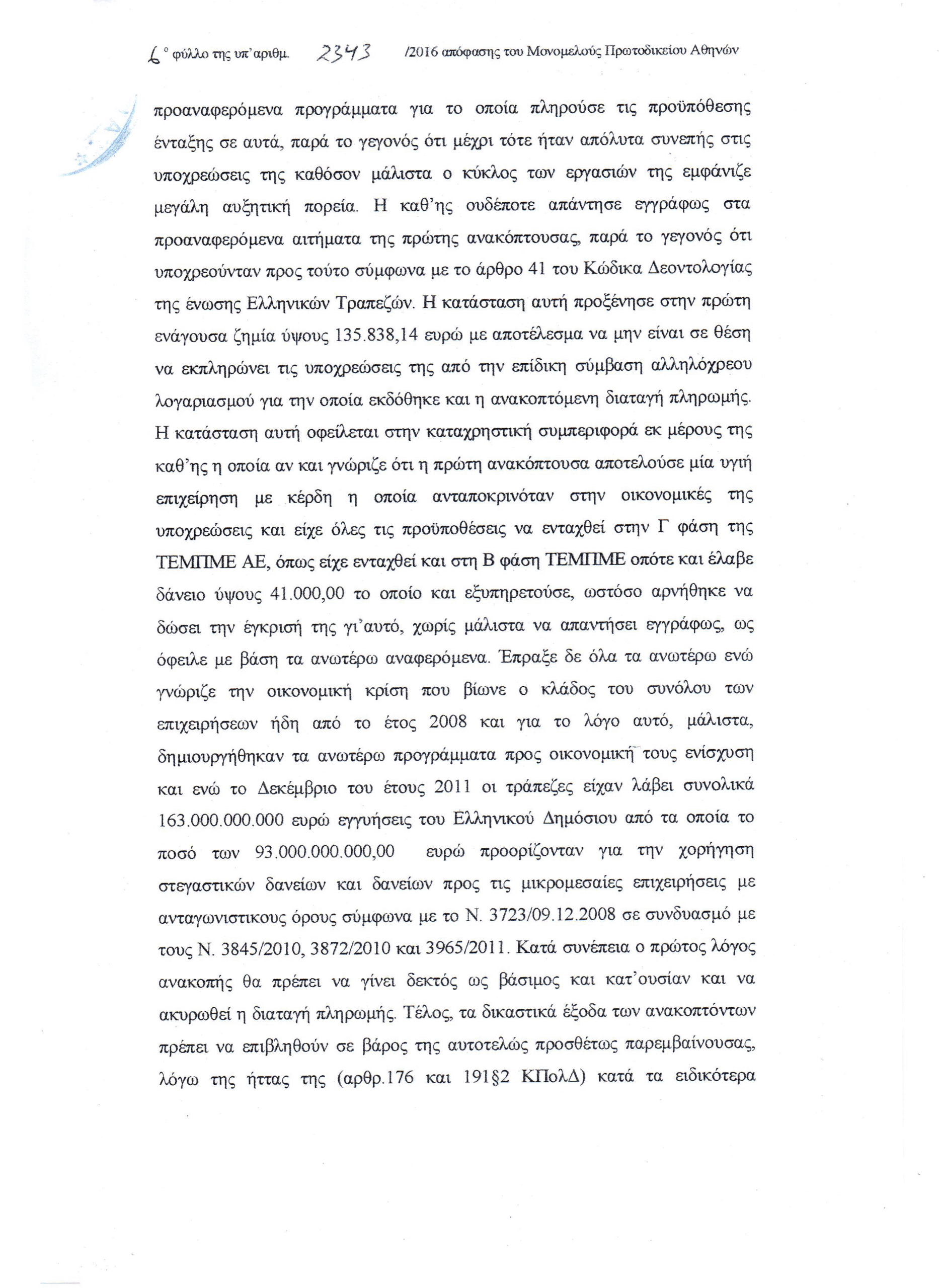 ΜΠρΑθ 2343/2016 – Καταχρηστική συμπεριφορά των τραπεζών η μη διάθεση των 93 δισ, που έλαβαν με την εγγύηση του δημοσίου, για την στήριξη επιχειρήσεων κ νοικοκυριών, όπως προέβλεπε η νομοθεσία.