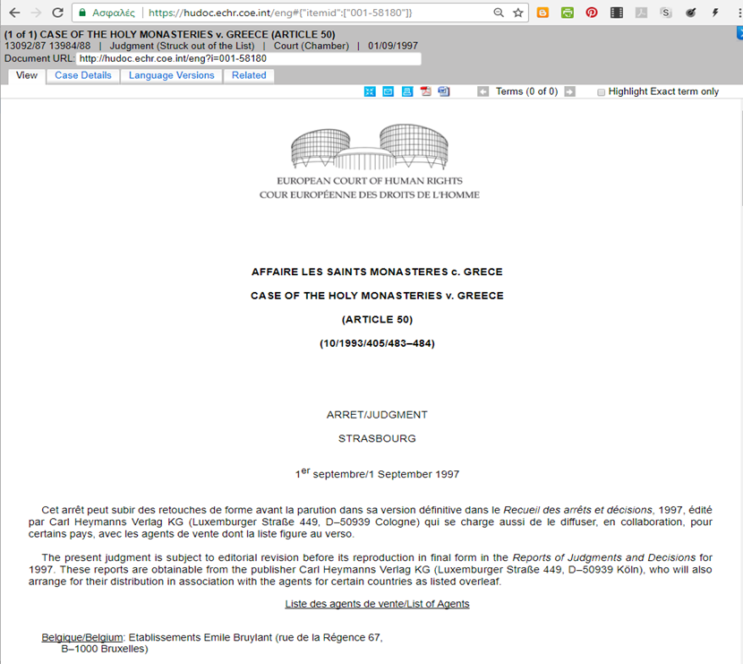 (3) Ευρωπαϊκό Δικαστήριο – Μοναστήρια κατά Ελλάδας (1997) …