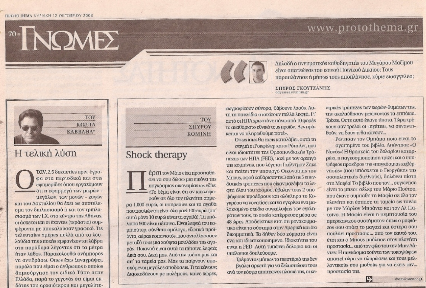 Δημοσιεύθηκε στο Πρώτο Θέμα την 12 Οκτωβρίου 2008 πριν ο Θέμος Αναστασιάδης μας στερήσει έναν από τους καλύτερους της ελληνικής δημοσιογραφίας.