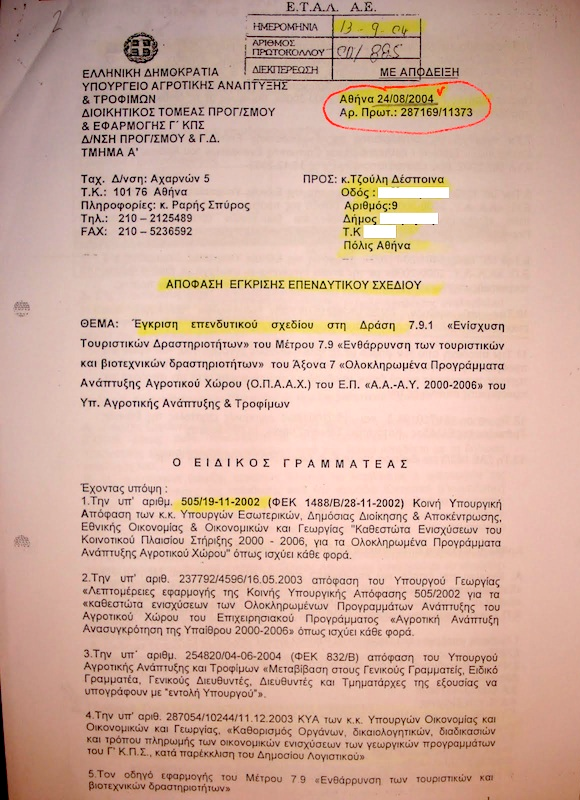 Μου έκανε εντύπωση η ημερομηνία που εγκρίθηκε η επιδότηση.